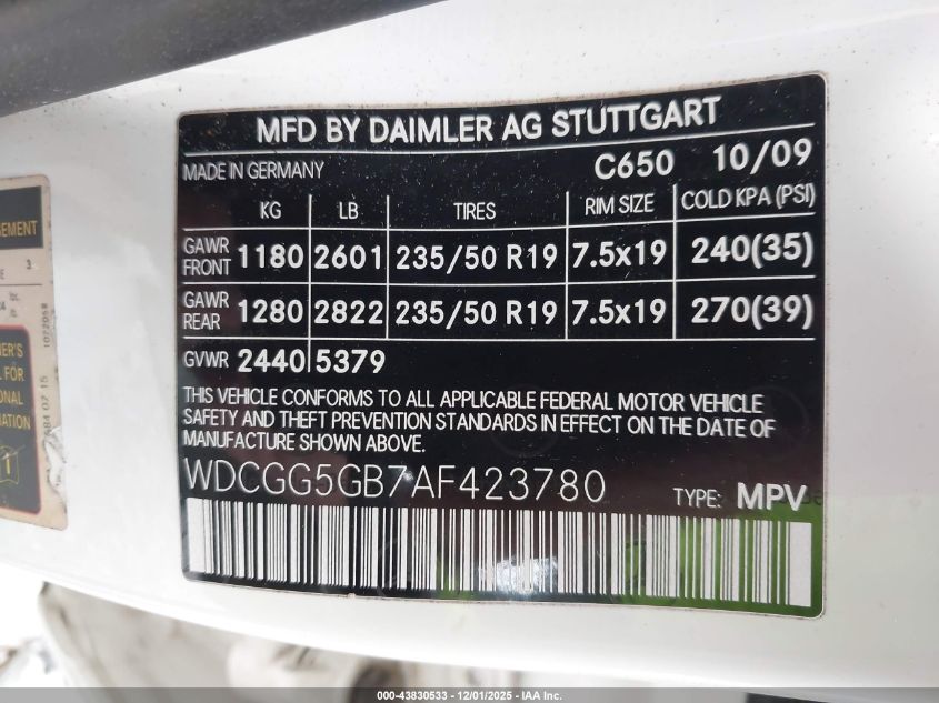 Колір БілийЦиліндри 6VIN WDCGG5GB7AF423780Стан Заводиться та їде (перевірено)Ушкодження Незначні AutoRIA