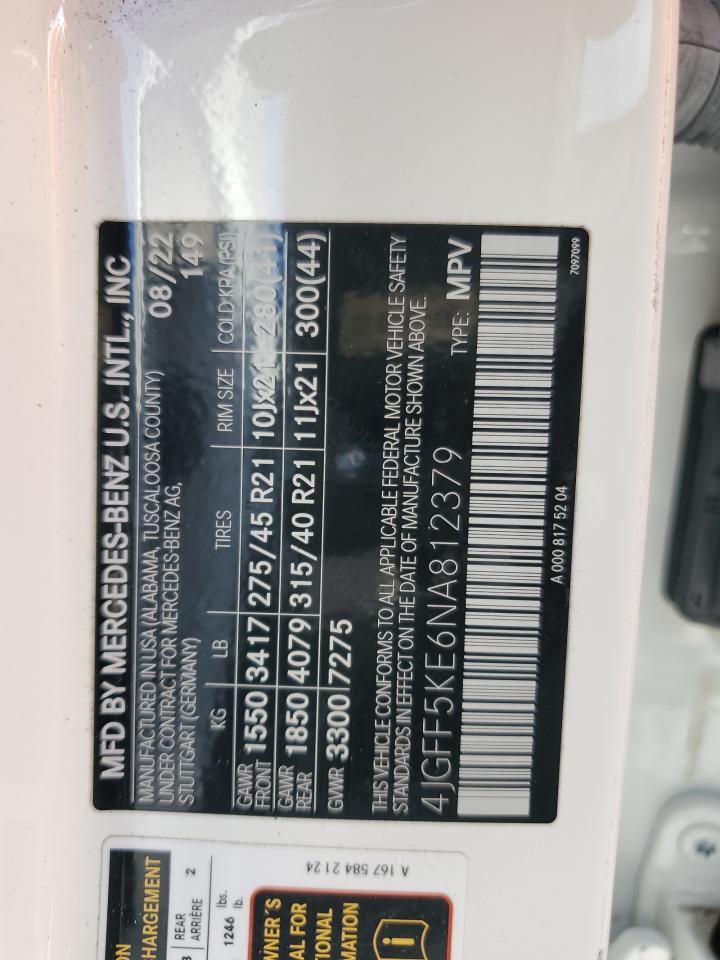 2022 MERCEDES-BENZ GLS-CLASS 2022 року Бензин, 3.0, Повний привід, vin - 4JGFF5KE6NA812379 з США