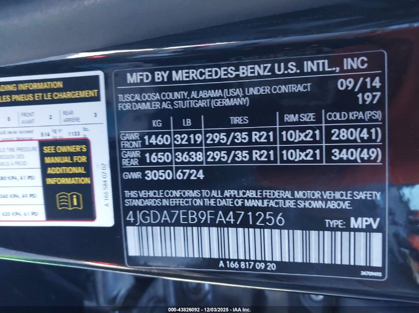 2015 MERCEDES-BENZ M-CLASS 2015 року Бензин, 5.5, Повний привід, vin - 4JGDA7EB9FA471256 з США