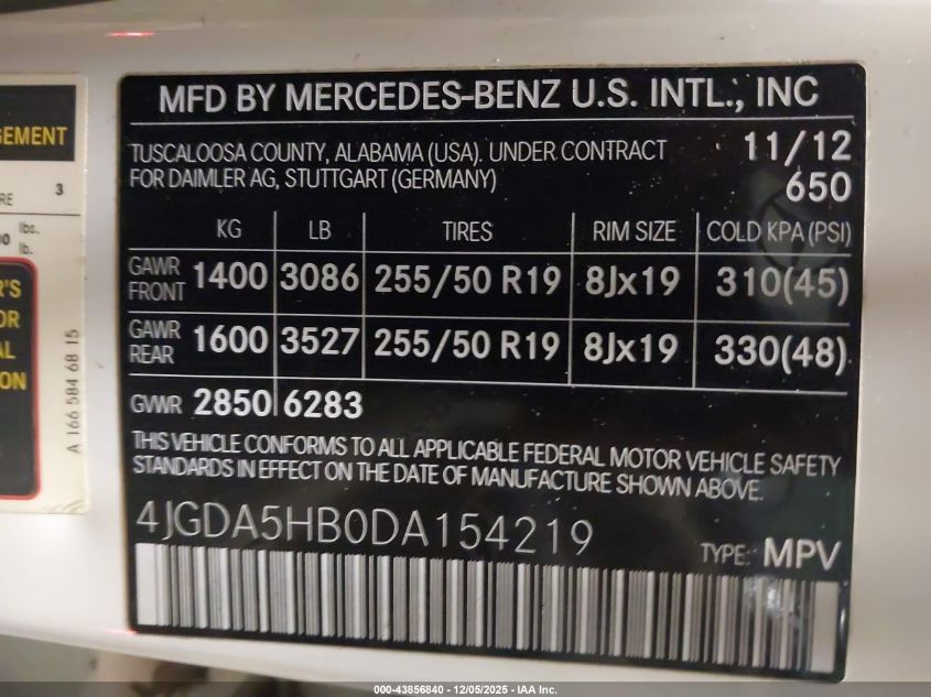 2013 MERCEDES-BENZ M-CLASS 2013 року Бензин, 3.5, Повний привід, vin - 4JGDA5HB0DA154219 з США