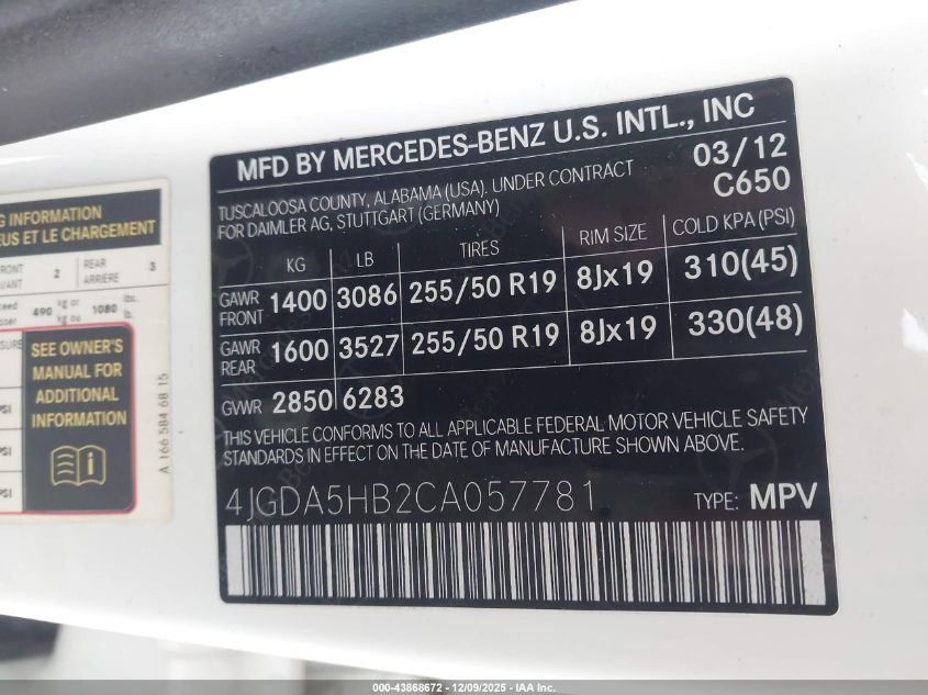 2012 MERCEDES-BENZ M-CLASS 2012 року Бензин, 3.5, Повний привід, vin - 4JGDA5HB2CA057781 з США