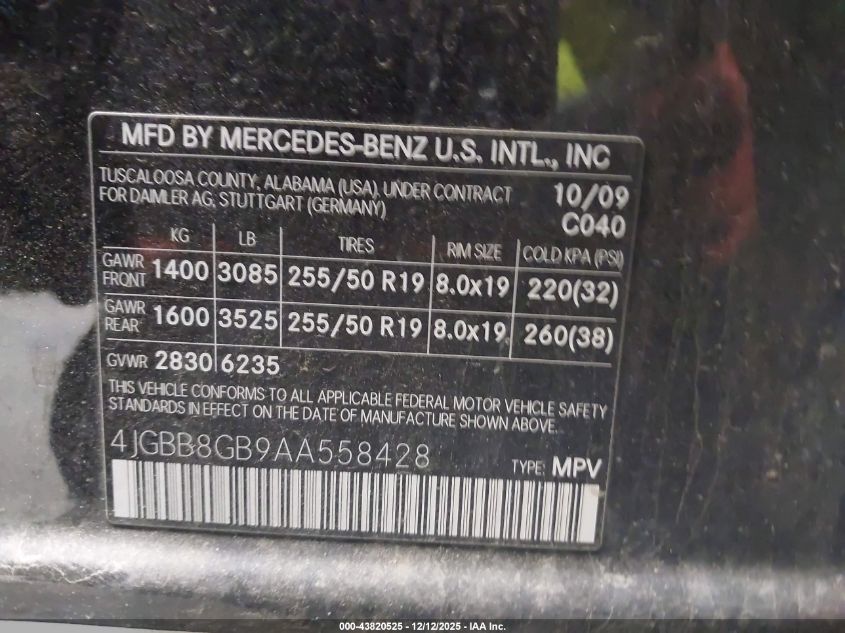 2010 MERCEDES-BENZ M-CLASS 2010 року Бензин, 3.5, Повний привід, vin - 4JGBB8GB9AA558428 з США