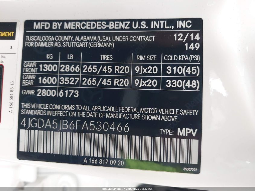 2015 MERCEDES-BENZ M-CLASS 2015 року Бензин, 3.5, , vin - 4JGDA5JB6FA530466 з США