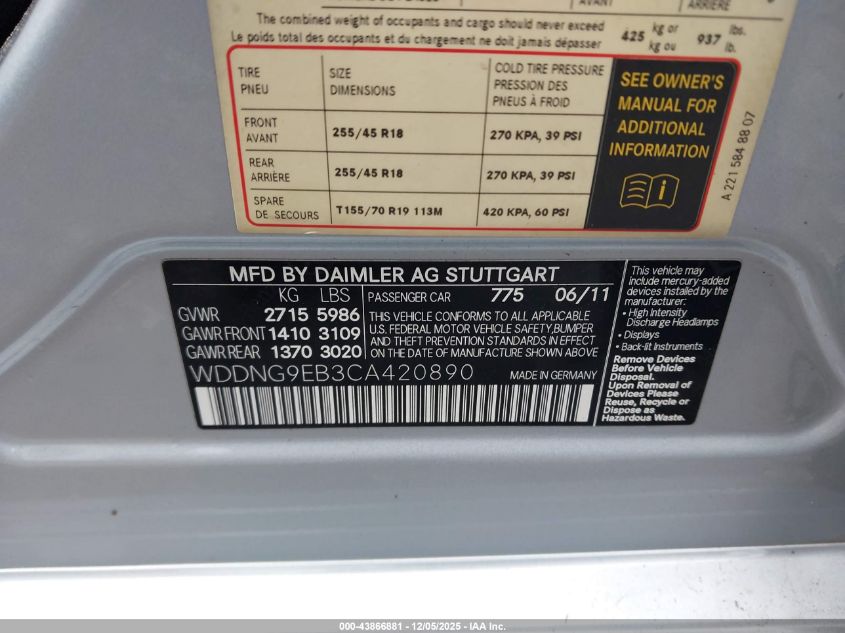 2012 MERCEDES-BENZ S-CLASS 400