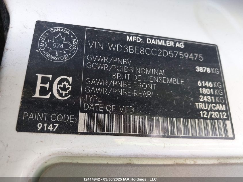 2013 MERCEDES-BENZ SPRINTER 2013 року Дизель, , , vin - WD3BE8CC2D5759475 з США