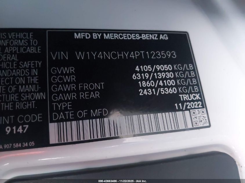 2023 MERCEDES-BENZ SPRINTER 2023 року Дизель, 2.0, Задній привід, vin - W1Y4NCHY4PT123593 з США