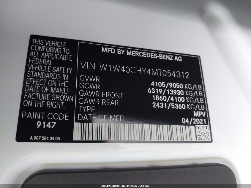 2021 MERCEDES-BENZ SPRINTER 2021 року Бензин, 2.0, Задній привід, vin - W1W40CHY4MT054312 з США