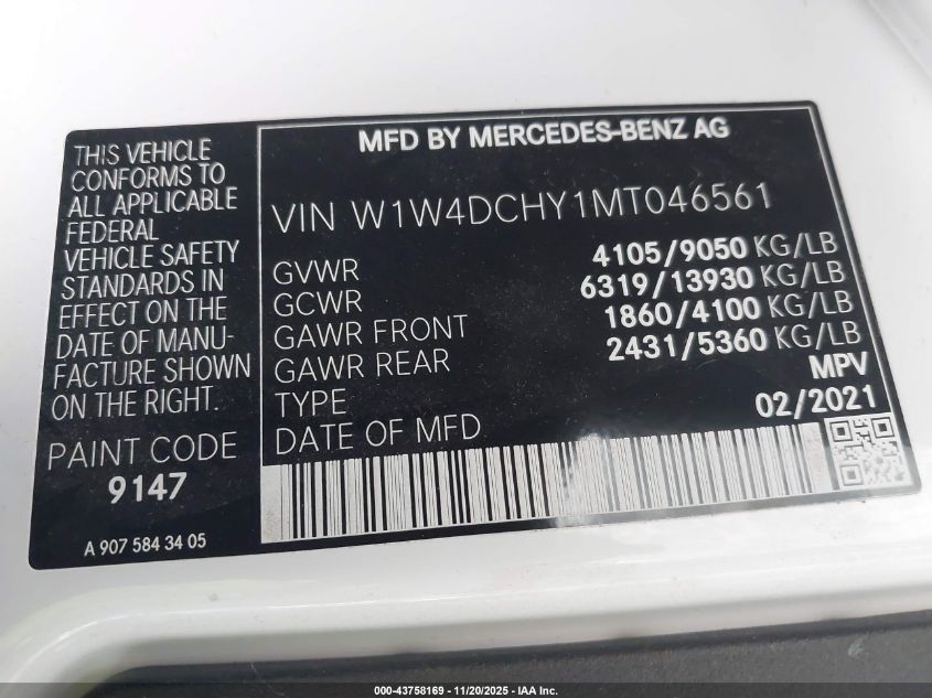 2021 MERCEDES-BENZ SPRINTER 2021 року Дизель, 2.0, Задній привід, vin - W1W4DCHY1MT046561 з США