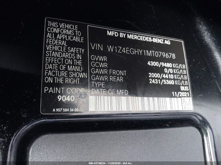 2021 MERCEDES-BENZ SPRINTER 2021 року Дизель, 3.0, Задній привід, vin - W1Z4EGHY1MT079678 з США