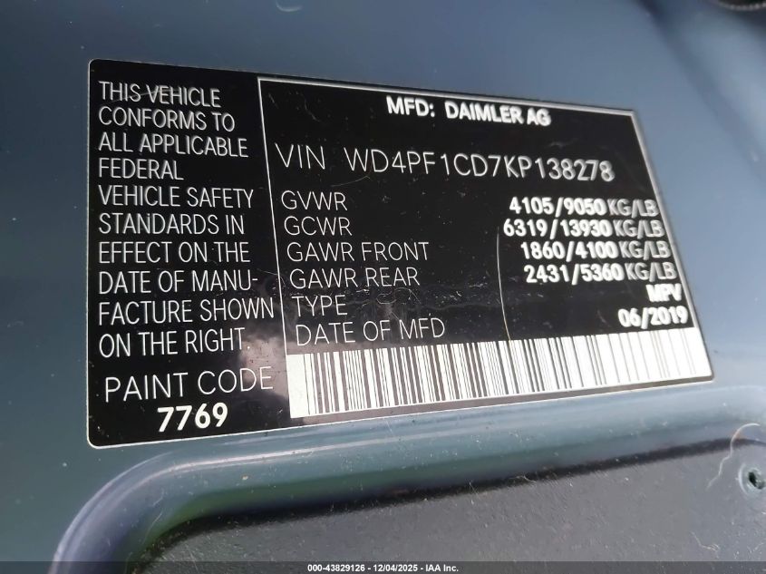 2019 MERCEDES-BENZ SPRINTER 1500/2500