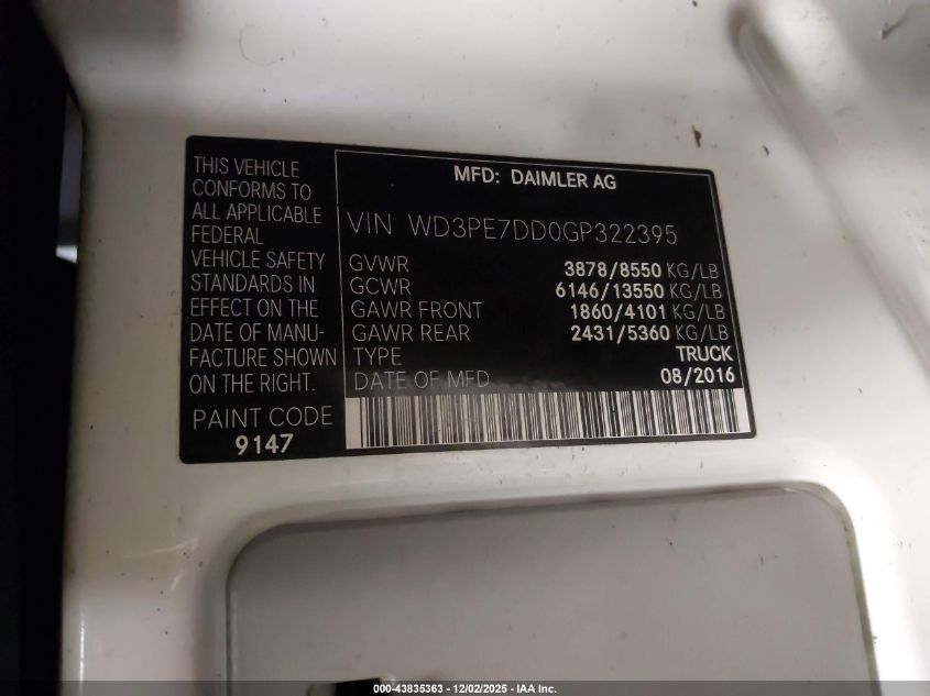 Колір БілийЦиліндри 4Привід Задній привідVIN WD3PE7DD0GP322395Стан Заводиться та їде (перевірено)Ушкодження Звичайний зносДата аукціону 2025-12-08 AutoRIA