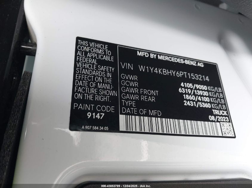 2023 MERCEDES-BENZ SPRINTER 2023 року Дизель, 2.0, Задній привід, vin - W1Y4KBHY6PT153214 з США
