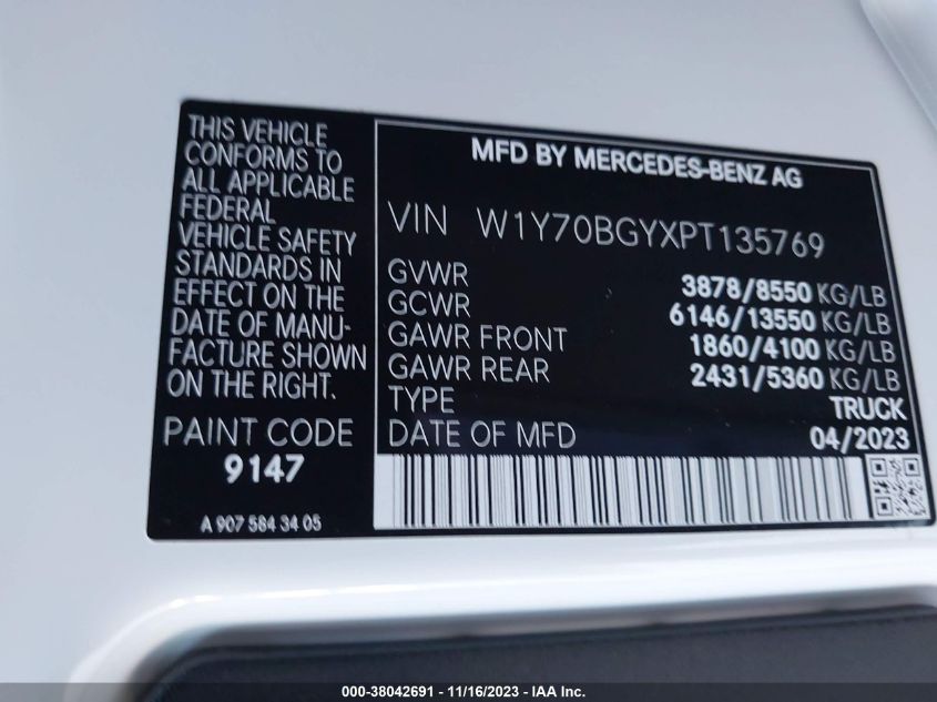 2023 MERCEDES-BENZ SPRINTER 2023 року Бензин, 2.0, Задній привід, vin - W1Y70BGYXPT135769 з США