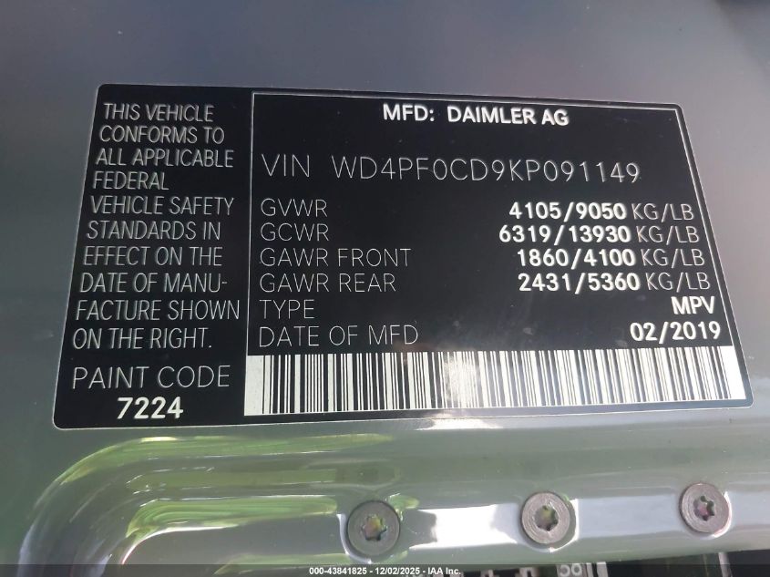 2019 MERCEDES-BENZ SPRINTER 1500/2500
