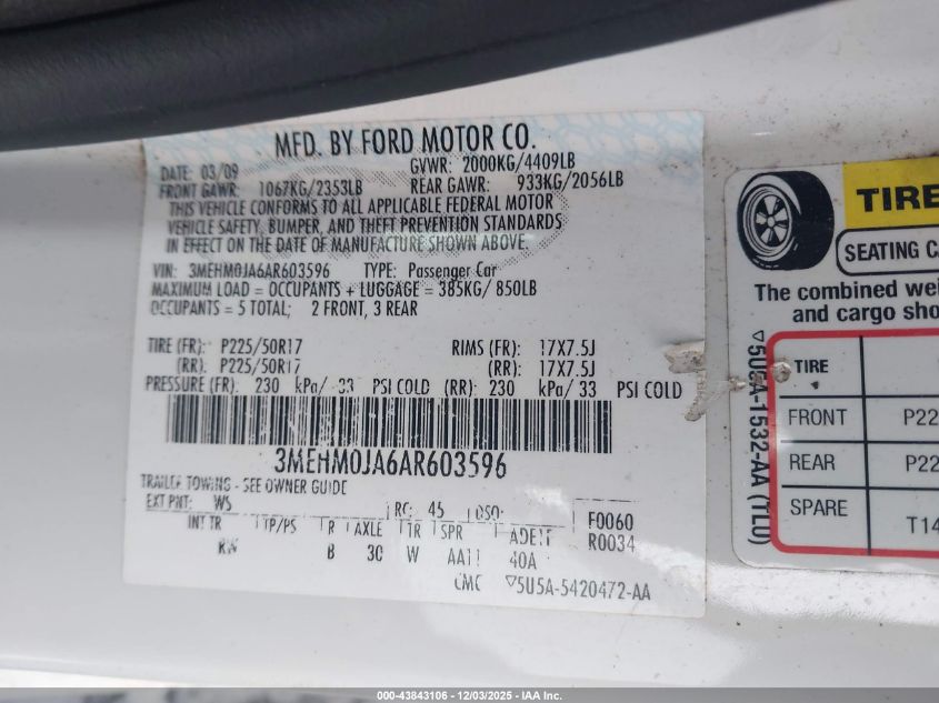 2010 MERCURY MILAN 2010 року Бензин, 2.5, Передній привід, vin - 3MEHM0JA6AR603596 з США