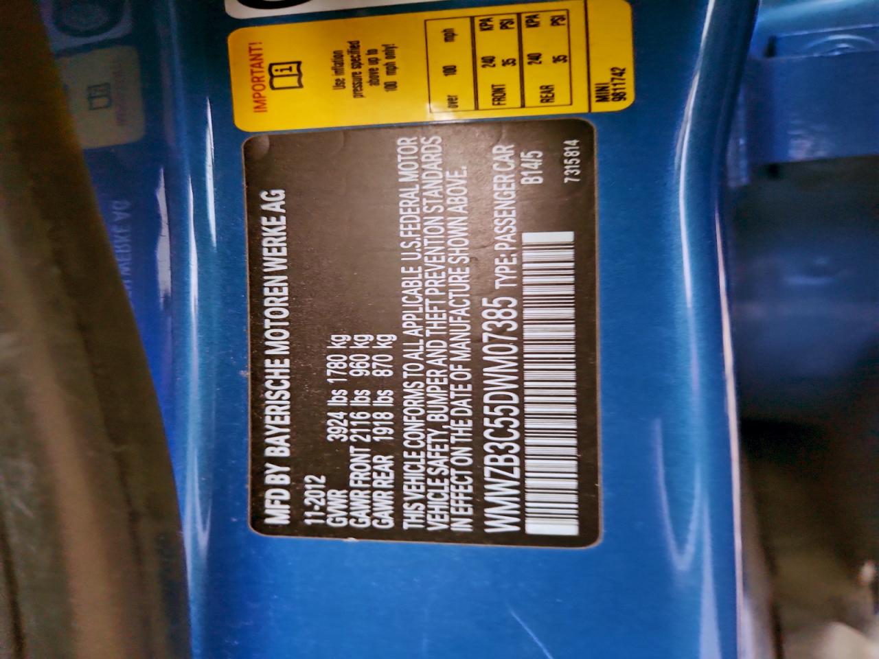 Колір СинійЦиліндри 4VIN WMWZB3C55DWM07385Стан Заводиться та їде (перевірено)Ушкодження Задня AutoRIA