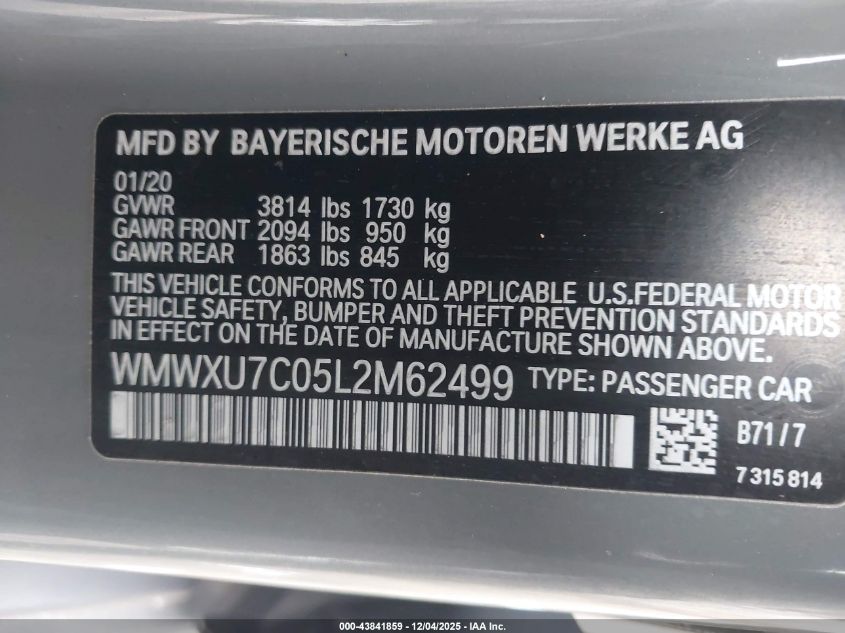 Колір СірийЦиліндри 3Привід Передній привідVIN WMWXU7C05L2M62499Стан Заводиться та їде (перевірено)Ушкодження Передня або задня