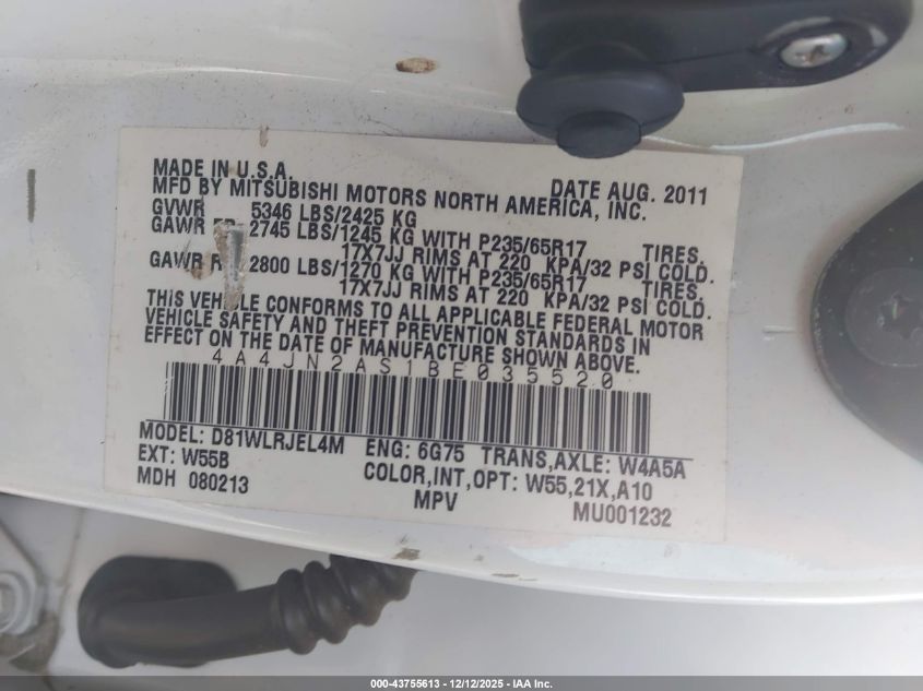 2011 MITSUBISHI ENDEAVOR 2011 року Бензин, 3.8, Повний привід, vin - 4A4JN2AS1BE035520 з США