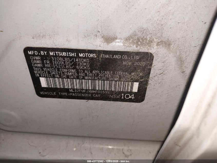 2021 MITSUBISHI MIRAGE 2021 року Бензин, 1.2, Передній привід, vin - ML32FUFJXMHF01599 з США