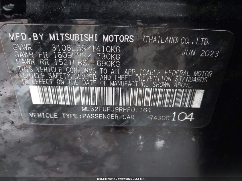 2024 MITSUBISHI MIRAGE 2024 року Бензин, 1.2, Передній привід, vin - ML32FUFJ9RHF01164 з США