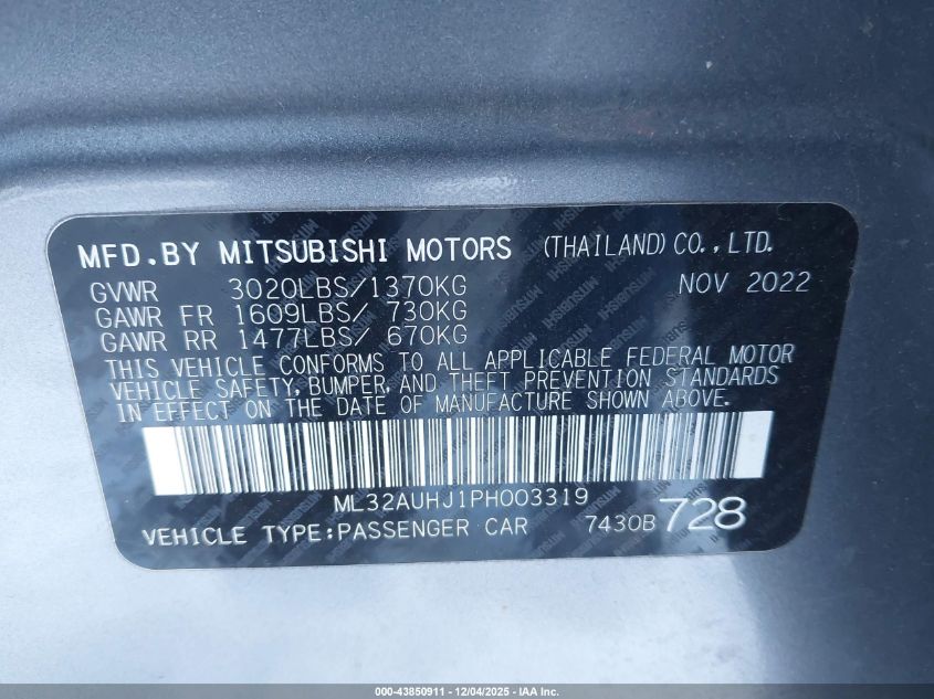 2023 MITSUBISHI MIRAGE 2023 року Бензин, 1.2, Передній привід, vin - ML32AUHJ1PH003319 з США