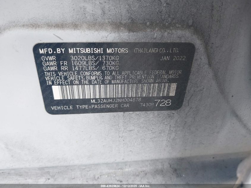 2022 MITSUBISHI MIRAGE 2022 року Бензин, 1.2, Передній привід, vin - ML32AUHJ2NH004878 з США