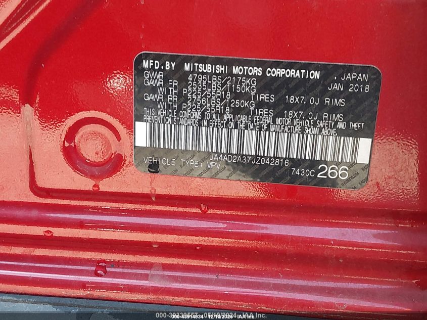 2018 MITSUBISHI OUTLANDER 2018 року Бензин, 2.4, Передній привід, vin - JA4AD2A37JZ042816 з США