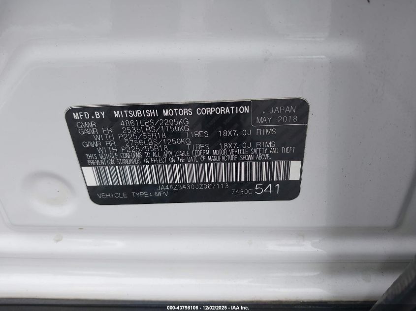 2018 MITSUBISHI OUTLANDER 2018 року Бензин, 2.4, Повний привід, vin - JA4AZ3A30JZ067113 з США