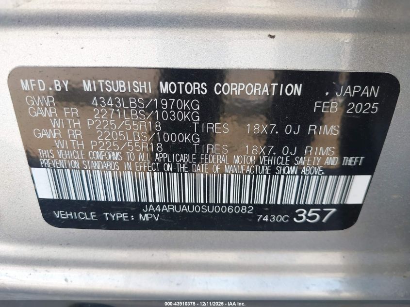 2025 MITSUBISHI OUTLANDER SPORT 2025 року Бензин, 2.0, Повний привід, vin - JA4ARUAU0SU006082 з США