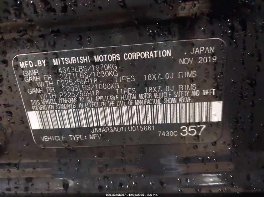 2020 MITSUBISHI OUTLANDER SPORT 2020 року Бензин, 2.0, Повний привід, vin - JA4AR3AU1LU015661 з США