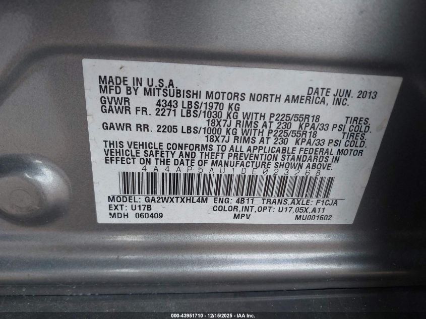 2013 MITSUBISHI OUTLANDER SPORT 2013 року Бензин, 2.0, Передній привід, vin - 4A4AP5AU1DE023268 з США