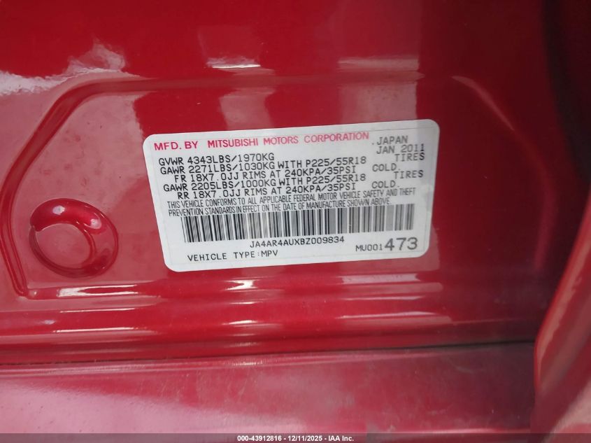 2011 MITSUBISHI OUTLANDER SPORT 2011 року Бензин, 2.0, Повний привід, vin - JA4AR4AUXBZ009834 з США