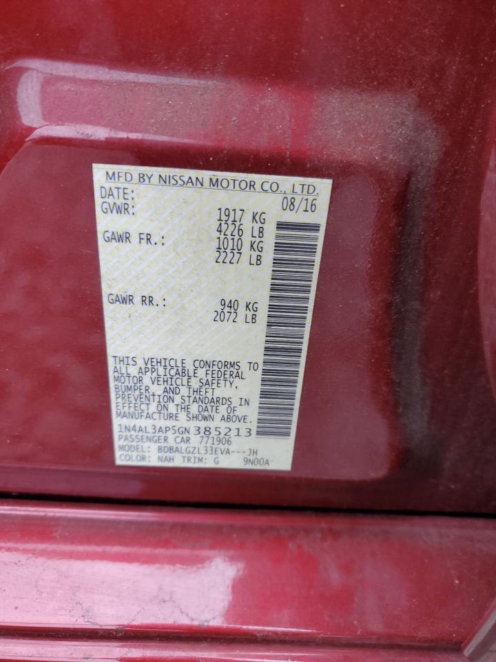 Колір БургундіяЦиліндри 4VIN 1N4AL3AP5GN385213Стан Заводиться та їде (перевірено)Ушкодження Передня або задняДата аукціону 2025-12-08 AutoRIA