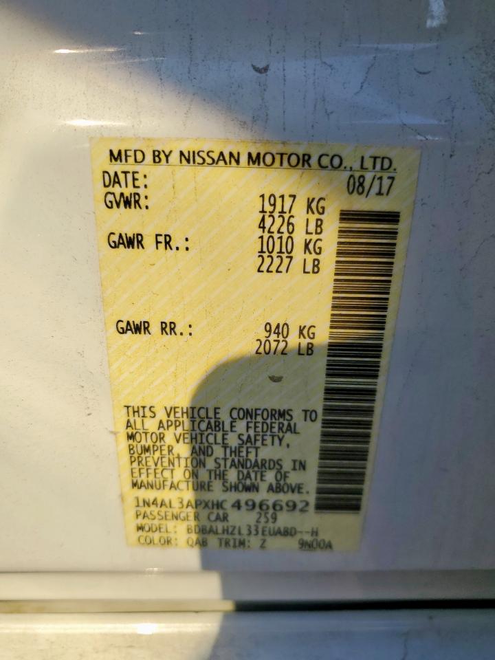 Колір БілийЦиліндри 4VIN 1N4AL3APXHC496692Стан Заводиться та їде (перевірено)Ушкодження Передня або задня AutoRIA
