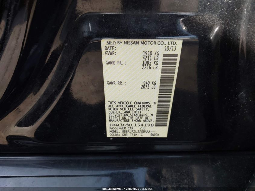 2014 NISSAN ALTIMA 2014 року Бензин, 2.5, Передній привід, vin - 1N4AL3AP8EC154198 з США