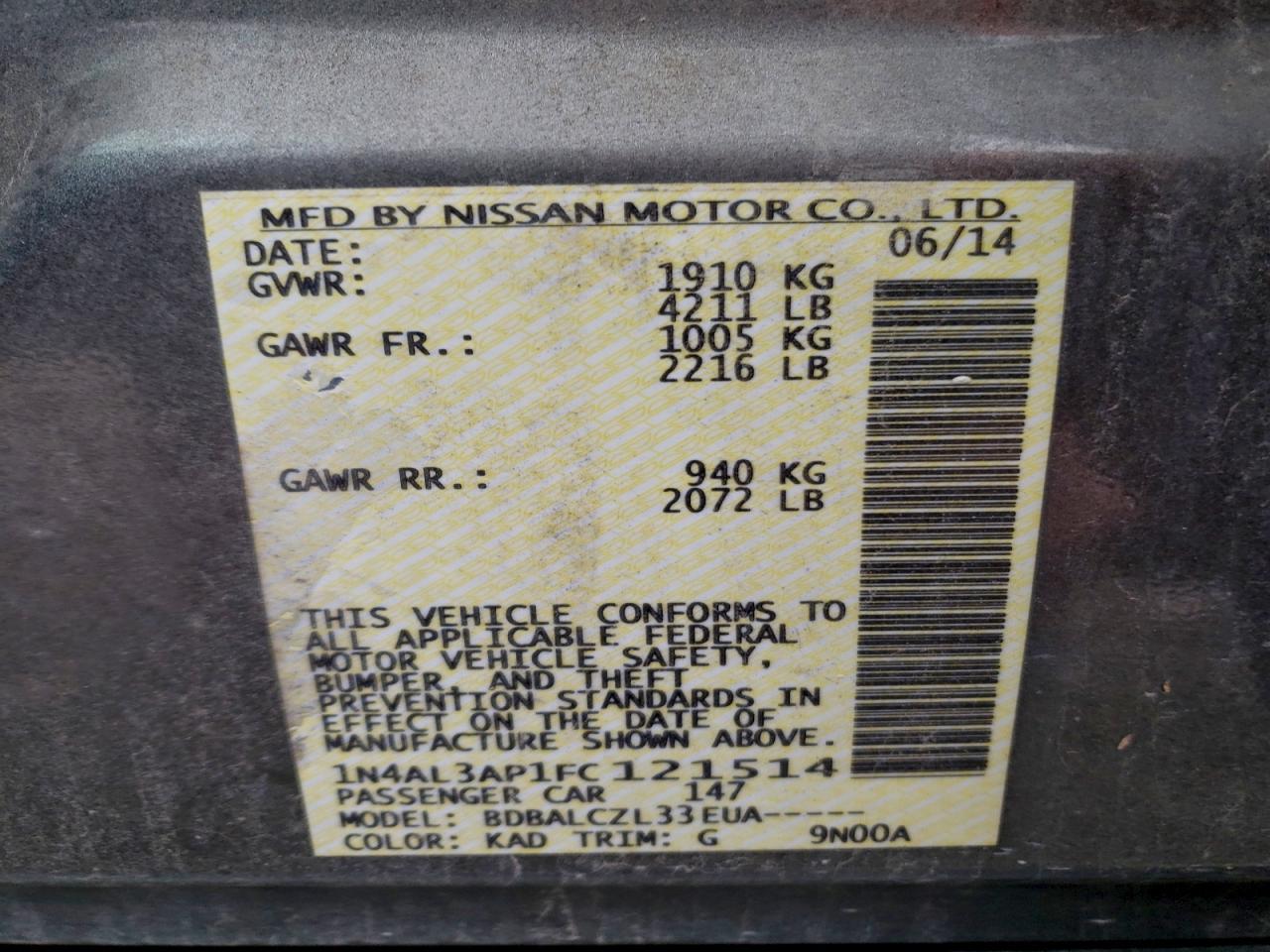 Колір СірийЦиліндри 4VIN 1N4AL3AP1FC121514Стан Заводиться та їде (перевірено)Ушкодження Передня або задня AutoRIA