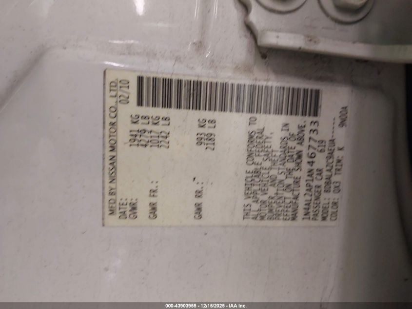 Колір БілийЦиліндри 4Привід Передній привідVIN 1N4AL2AP1AN467733Стан СтаціонарноУшкодження Передня або задня AutoRIA