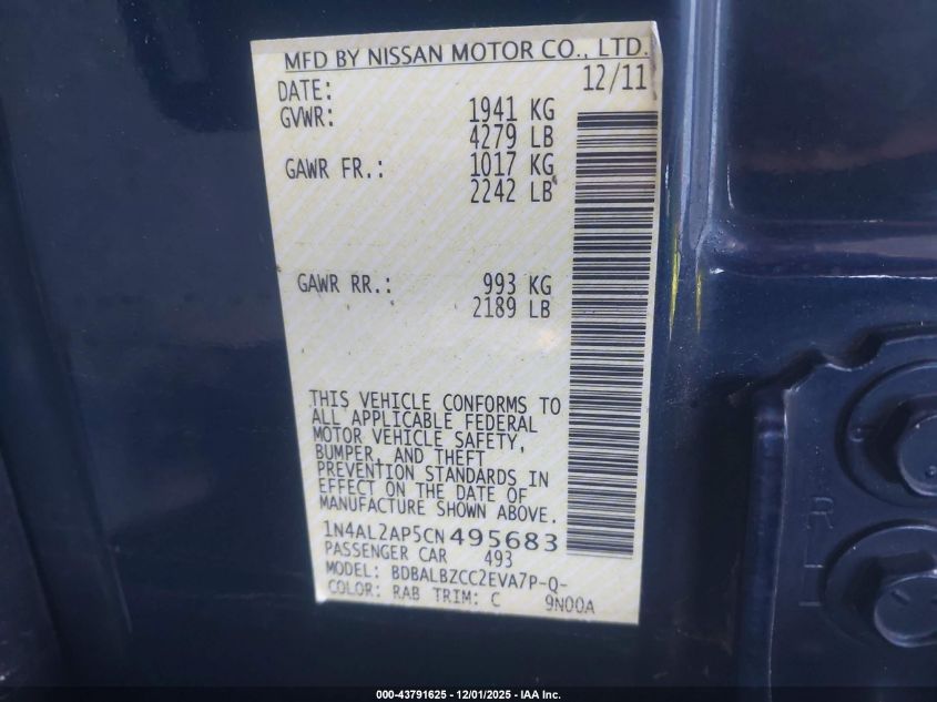 2012 NISSAN ALTIMA 2012 року Бензин, 2.5, Передній привід, vin - 1N4AL2AP5CN495683 з США