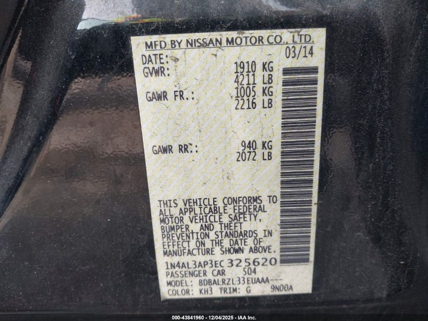 2014 NISSAN ALTIMA 2014 року Бензин, 2.5, Передній привід, vin - 1N4AL3AP3EC325620 з США
