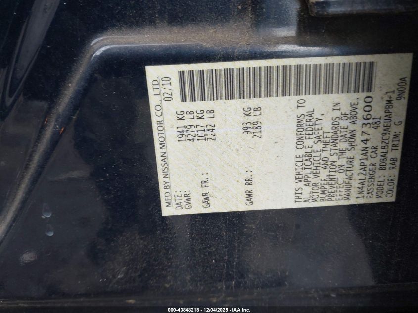 2010 NISSAN ALTIMA 2010 року Бензин, 2.5, Передній привід, vin - 1N4AL2AP1AN473600 з США