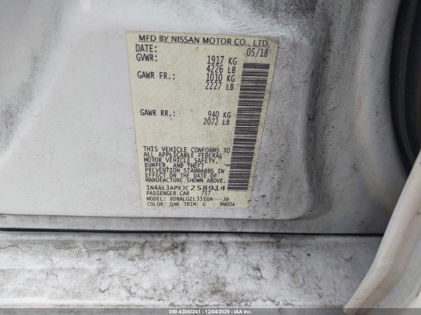 2018 NISSAN ALTIMA 2018 року Бензин, 2.5, Передній привід, vin - 1N4AL3APXJC258914 з США