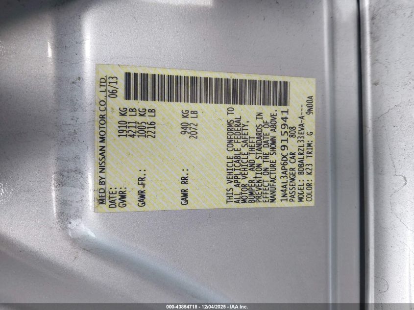 2013 NISSAN ALTIMA 2013 року Бензин, 2.5, Передній привід, vin - 1N4AL3AP6DC915941 з США