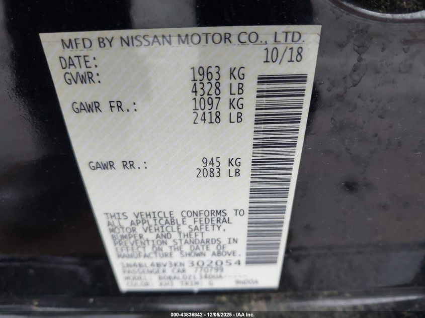 2019 NISSAN ALTIMA 2019 року Бензин, 2.5, Передній привід, vin - 1N4BL4BV3KN302054 з США