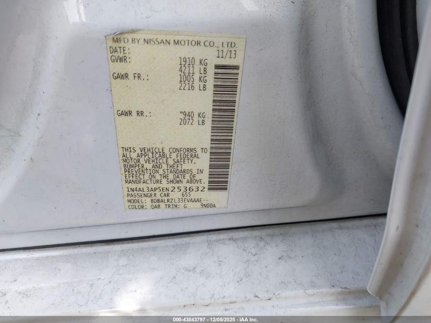 2014 NISSAN ALTIMA 2014 року Бензин, 2.5, Передній привід, vin - 1N4AL3AP5EN253632 з США
