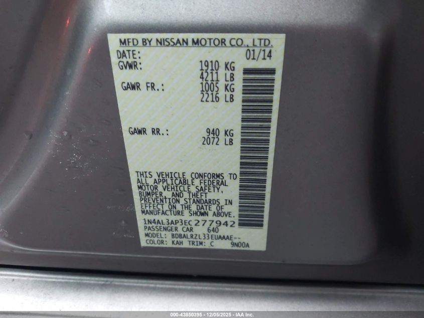 2014 NISSAN ALTIMA 2014 року Бензин, 2.5, Передній привід, vin - 1N4AL3AP3EC277942 з США