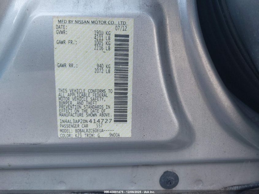 2013 NISSAN ALTIMA 2013 року Бензин, 2.5, Передній привід, vin - 1N4AL3AP2DN414727 з США