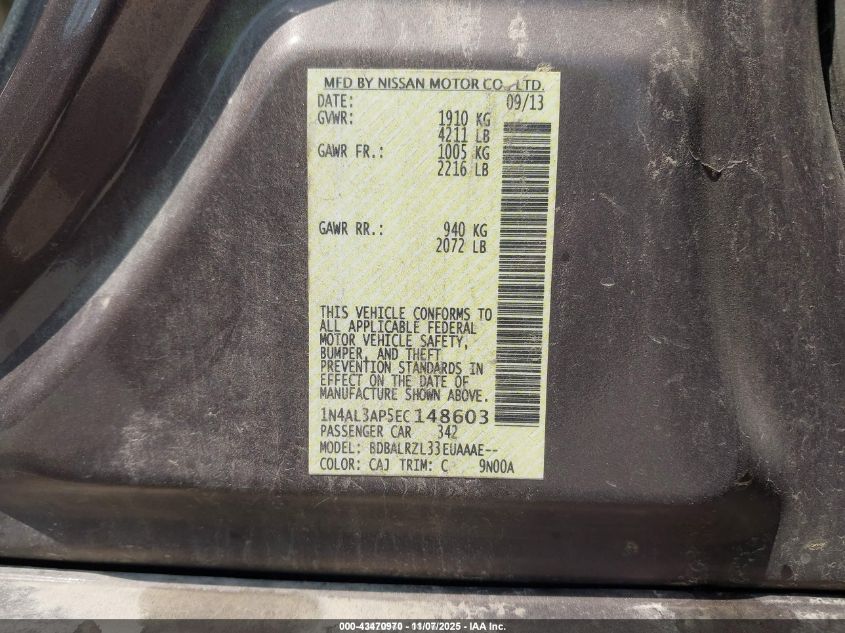 2014 NISSAN ALTIMA 2014 року Бензин, 2.5, Передній привід, vin - 1N4AL3AP5EC148603 з США