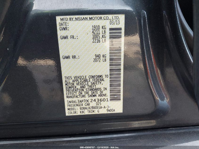2013 NISSAN ALTIMA 2013 року Бензин, 2.5, Передній привід, vin - 1N4AL3AP7DC243601 з США