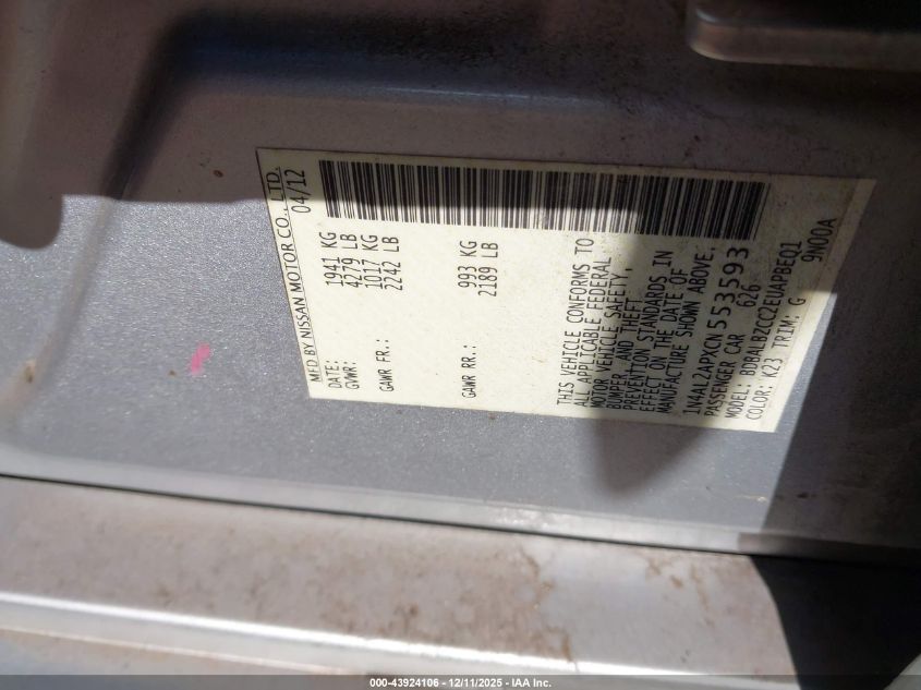 2012 NISSAN ALTIMA 2012 року Бензин, 2.5, Передній привід, vin - 1N4AL2APXCN553593 з США