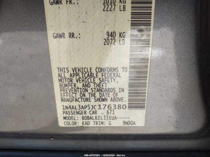 2018 NISSAN ALTIMA 2018 року Бензин, 2.5, Передній привід, vin - 1N4AL3AP5JC176380 з США